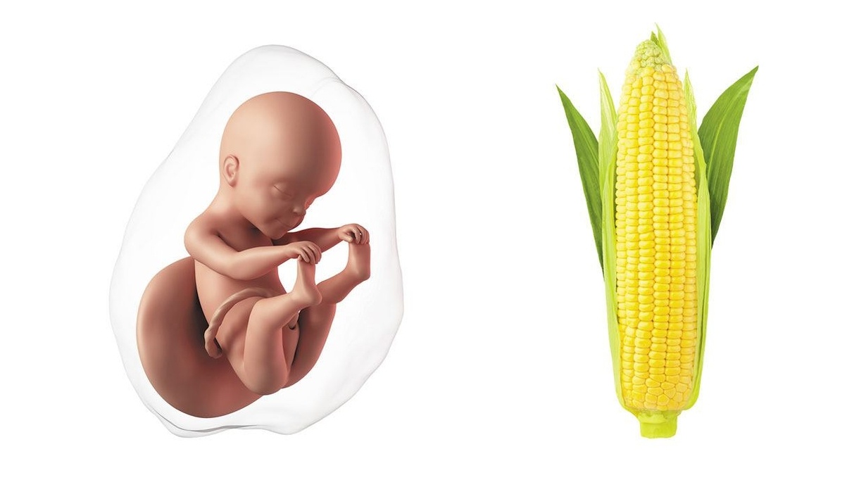 Foshnja në java e 25 e shtatzanise është aq e madhe sa një misër, me një gjatësi rreth 34cm (13.6 inç) dhe peshon rreth 680 gram (1.5 paund).